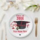 HAMbyWhiteGlove aka HAMbWG designed, Graduation theme paper plate with "Class of" and you class year, a graduation cap with a diploma and the words graduate written over it in red, and your name at the bottom.