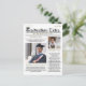 Newspaper Headlines Graduation Photo Invitation This design features a graduate Newspaper design, with a modern look, perfect for high school or college, with unique typography, a photo collage layout, and a trendy, stylish, newspaper template, perfect for grad graduation party invitation