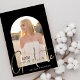 This design features a graduate announcement card with a 2 photo template, modern minimalist, perfect for high school or college, elegant typography, with black and gold, simple, trendy script, class of 2024, graduation picture