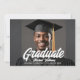 This simple chic photo graduation announcement features a full photograph of your graduate. Bold simple script of your student name and class year in white typography for modern minimalist cards. Celebrate the Class of 2026.