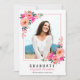 Graduate Pink Floral Frame Graduation Party Photo Invitation