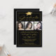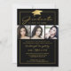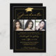 Elegant black and gold photo graduation party invitation featuring 3 square pictures, modern handwritten script typography and a faux metallic gold foil graduation cap. ASSISTANCE: For help with design modification or personalization, colour change or transferring the design to another product, contact the designer BEFORE ORDERING via the Zazzle Chat MESSAGE tab or email makeitaboutyoustore@gmail.com.