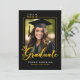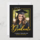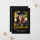 This graduation announcement card features a classic black and gold theme with your graduate's photo and trendy script typography. The back of the card features your grad's photo with a text area for adding their future college intent or goals. Perfect for high school or college graduates wanting a classic "class of" themed graduation announcement.