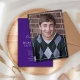 This design features a graduate simple stylish elegant invitation and announcement, a minimalist purple graduation hat, trendy classy laurel leaves laureate, class of 2023 2024 2025, minimal purple white school colours, graduation senior photo picture, graduation invitation announcement card, high school or college, a grad party invite, minimal simple classic graduation