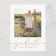 This design features a graduate invitation postcard, with a 2 photo template, perfect for high school or college graduations, with elegant gold calligraphy script typography, a stylish grad graduation party invitation postcard.