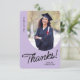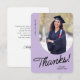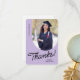A graduate thank you card featuring a vertical photo with an arched edge. Personalize this light purple and black card with your own message of gratitude or use the one shown.