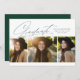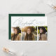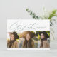 This three photo graduation announcement and invitation is the perfect way to celebrate your graduate. With an modern and elegant script "graduate" in dark green and underlined, this design also features room for personalization including name, school and year. The back is a matching navy blue with a subtle dash pattern to match the underline on the front and includes room for graduation party invitation text. This stylish green graduation announcement works well for a high school graduate or a college graduate. Other school colors and styles available in the collection.