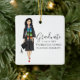 Latina graduate in black cap and gown. She is also wearing a colorful serape and holding her grad cap in one hand. Cute graduate illustration for females graduating college or university. The graduation ornament text can be personalized. Add this simple and elegant ornament to your Christmas tree to celebrate your grad.
