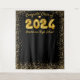 Graduation 2024 Gold Balloons Black Photo Backdrop Tapestry