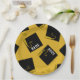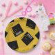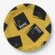 Creative gold graduation party plates featuring black and gold graduation caps. To personalize edit text to add name of grad and senior class year.