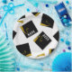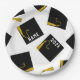 Creative grad party plates featuring classic black and gold graduation caps. To personalize edit text to add his or her name and senior class year.