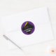 Classic graduation gift stickers or party favour labels featuring black graduation cap with gold tassel on a purple background. Edit text to add senior class grad's name.