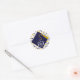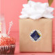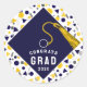 Creative graduation congrats party favours, graduate gift stickers or envelope seals featuring navy blue grad cap with a gold tassel on confetti background. Edit text to add grad's name and senior class year.