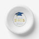 Elegant personalized graduation CLASS OF 2025 graduation party white paper bowls featuring faux metallic blue and gold graduation cap and year with your custom text (shown with CONGRATULATIONS NAME) in blue. ASSISTANCE: For help with design modification or personalization, colour change, resizing, transferring the design to another product or if you would like coordinating items, contact the designer BEFORE ORDERING via the Zazzle Chat MESSAGE tab or email makeitaboutyoustore@gmail.com.
