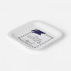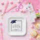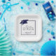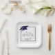 Modern personalized CLASS OF 2025 navy blue, silver and white graduation party plates with your graduate's name in a chic handwritten script with faux metallic navy blue graduation cap and faux metallic silver 2025. ASSISTANCE: For help with design modification/personalization, colour change, transferring the design to another product or would like coordinating items, contact the designer BEFORE ORDERING via Zazzle Chat or makeitaboutyoustore@gmail.com.