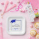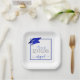 Modern personalized CLASS OF 2025 royal blue, silver and white graduation party plates with your graduate's name in a chic handwritten script with faux metallic royal blue graduation cap and faux metallic silver 2025. ASSISTANCE: For help with design modification/personalization, colour change, transferring the design to another product or would like coordinating items, contact the designer BEFORE ORDERING via Zazzle Chat or makeitaboutyoustore@gmail.com.