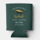 Create your own college or high school graduation party supplies with modern trendy grad design template. Featuring a gold and black graduation cap, script calligraphy, and the graduation details you can easily customize to make a unique can cooler for your party
