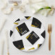 Creative graduation party plates featuring black and gold graduation caps. To personalize edit text to add name of grad and senior class year.