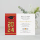 Add your year of graduation, name, and details of the venue with date to this modern bold gold on red white background with black typography graduation party invitation by using our "Personalize" button above