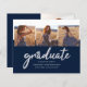 Announce your achievement in style with this 4 photo graduation announcement template card. Replace the text with your school or college name, details of your graduation, and what your future plans are on the reverse side.