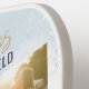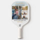 Photo collage gold script graduation party photo pickleball paddle for the new grad. Features 4 photos of the graduate, and the word "Congratulations" is set. Add their name, school college, and class year of graduation by clicking the "Personalize" button.