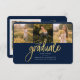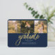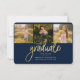Graduation 4 Photo Collage Script Blue Gold Announcement card. Easily customize this by changing the text and replacing the photos with yours. A modern and trendier way to announce your graduation this year!