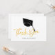 Easily customize this elegant modern graduation thank you card with your name by clicking the "Personalize" button. This card features a graduation cap and a modern script that says "Thank you" in faux gold that is set. Add your custom message on the reverse with your name and class