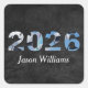 Black 2026 graduation caps in the sky with a rainbow on a black leather background.