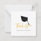 Easily customize this elegant modern graduation thank you card with your name by clicking the "Personalize" button. This card features a graduation cap and a modern script that says "Thank you" in faux gold that is set. Add your custom message on the reverse with your name and class