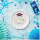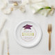 Elegant personalized graduation CLASS OF 2026 graduation party paper plates featuring faux metallic burgundy maroon and gold graduation cap and year with your custom text (shown with CONGRATULATIONS NAME) in maroon. ASSISTANCE: For help with design modification or personalization, colour change, resizing, transferring the design to another product or if you would like coordinating items, contact the designer BEFORE ORDERING via the Zazzle Chat MESSAGE tab or email makeitaboutyoustore@gmail.com.