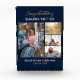Photo collage gold script graduation party photo collage keepsake for the new grad. Features 4 photos of the graduate, and the word "Congratulations" which is set.