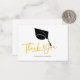 Easily customize this elegant modern graduation thank you card with your name by clicking the "Personalize" button. This card features a graduation cap and a modern script that says "Thank you" in faux gold that is set. Add your custom message on the reverse with your name and class