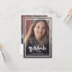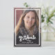 A Modern bold elegant Script with two photos Graduation Announcement. Featuring a full size photo on the front with white text overlay and a photo on the reverse side with optional details.