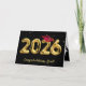 Gold foil balloons for 2026 graduation on a black background with a red cap and gold confetti.