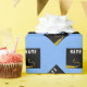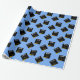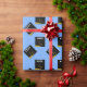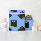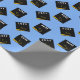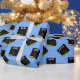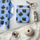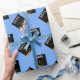 Creative light-blue graduation gift wrap for the grad featuring black and gold graduation caps. Edit text to add his or her name and the year.