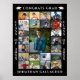 Celebrate your graduate with this custom color photo memory poster to showcase 23 of your favorite photos from childhood to senior year to display at a graduation party or open house or use as a welcome sign. The design features an easy-to-upload photo collage template for 23 rectangle pictures with the title "Congrats Grad" accented with graduation caps and personalized with their name and class year. This custom color poster can be framed to display on an easel or tabletop. OPTIONS: The sample is shown in a 18x24" size on Value Paper (Matte); other standard and custom print sizes, paper quality and framing, Instant Digital Download file for printing locally or transferring the design to a foam board, banner or other product options are available on the ordering page. RESIZING TIP: Choose Custom Size for even borders by changing the height and width proportionately AFTER clicking the UNLOCK icon (looks like a chain link). NEED IT FAST? Contact the designer for the link to the instant downloadable file format to print locally. ASSISTANCE: For design assistance, contact the designer BEFORE ORDERING via the Zazzle Chat MESSAGE tab or email makeitaboutyoustore@gmail.com.