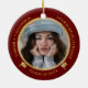 Graduation 2 Photo D Red |Gold Grad Cap Class Year Ceramic Ornament