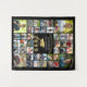 Easily create a graduation photo memories display or party backdrop decoration utilizing this easy-to-upload photo collage template with 42 square pictures of your graduate through the years. The custom colour design features a faux metallic gold graduation cap, the title CONGRATULATIONS NAME and class year (shown in black, gold and white). CHANGES: The black background colour can be changed to a school colour or a coordinating party theme colour and/or change the text font style, colour, size and placement in EDIT. TAPESTRY OPTIONS: The sample is shown in the 50x60" size--other sizes are available on the ordering page. ASSISTANCE: For help with design modification or personalization, resizing, transferring the design to another product or if you would like coordinating items, contact the designer BEFORE ORDERING via the Zazzle Chat MESSAGE tab or email makeitaboutyoustore@gmail.com.