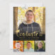 Modern graduation party photo invitation with 4 pictures on the front with a hand lettered gold brush stroke GRADUATE title on the front and PARTY on the back with your graduation party invitation details. ASSISTANCE: For help with design modification or personalization, colour change, resizing or transferring the design, contact the designer BEFORE ORDERING via the Zazzle Chat MESSAGE tab or email makeitaboutyoustore@gmail.com.