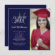 Navy Blue and White Modern Graduation Invitation with Monogram. Customize with your graduating class year and grad information by selecting "customize it" and use Zazzle's easy to use menu prompts. Exchange the sample photo for your own. Flexible design to allow choice of many different card sizes depending on your photo of your grad.