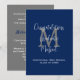 Graduation Announcement, Name Navy Blue White Grey Invitation