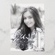 Add in the photo of your proud graduate and their graduation year on the front and customize the text with their name, accomplishments and personal message on the back. Text on front reads "Just Graduated 20XX" with an illustration of a graduated cylinder wearing a graduation mortarboard hat. Perfect for students headed into the science field.