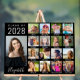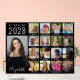 Fête de remise de diplômes acrylique noire signe de bienvenue et gardien avec un collage photo de 17 du diplômé à travers leurs années d'école et leur nom dans un script blanc élégant. Ajoutez vos légendes personnalisées sous chaque photo.