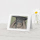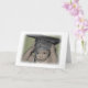 hand coloured photo greeting card of a baby in a graduation mortar board cap.