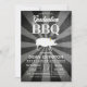 Black and white Graduation BBQ invitations with pig and graduate hat. Perfect for a graduation parties. Chalkboard burst background. Easy to customize.