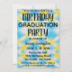 Use this Graduation Birthday One Photo Blue Tie Dye Party Invitation to throw your child the best combination birthday and grad party. It features a blue, yellow, and white tie dye style pattern background. Personalize with your party details and a favourite photo on the back.