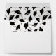 A black and white customizable envelope for a graduation party or graduation announcement for him or her. The back flap of the envelope is decorated with black graduation caps and mortarboards tossed in the air on a white background. Fun graduation party invite envelopes for high school or college graduations.