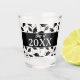 Black and white graduation party, black and white shot glass. Nice graduation personalized class year for a celebration for a graduate from a high school, college, or university with school colours of black and white. Personalize with the graduating class year.