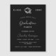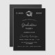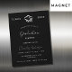 A modern, elegant graduation party invitation magnetic card. A black background, white text. Personalize and add a name, year and details.