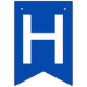 Happy Graduation in colbalt blue and white. Insert School Name, Graduate's First Name and Class of YEAR shown in black and white in the space between the words Happy and Graduation. To adjust text sizing for Name, click Personalize and click on Layer (Flag Number 6) to adjust the plus minus Scale, or to move line spacing up or down. Click Personalize to pick your school colours for each flag from background colour palette, or insert a hex code number, and click on each Layer Flag Number, one by one, to edit background or text colour. Original Design © 2017 TamiraZDesigns.